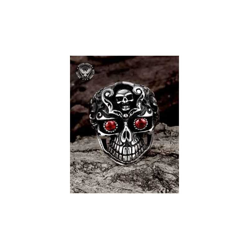 انگشتر بی همتا جمجمه با 2 نگین الماس تراش یاقوت و طراحی هنرمندانه و خاص