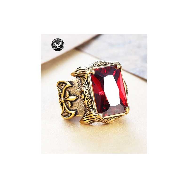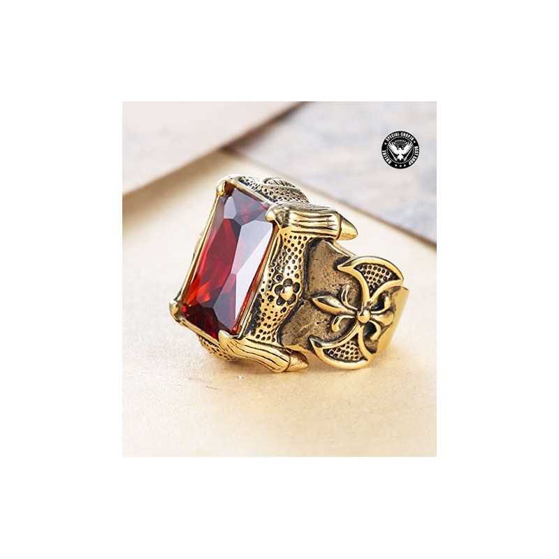این انگشتر خاص با طراحی برجسته و منحصربه‌فرد، الهام‌گرفته از سبک‌های سلطنتی و افسانه‌ای است. سنگ بزرگ یاقوت‌مانند با رنگ قرمز آتشین، در قاب طلایی که با ظرافت بی‌نظیر تراش خورده، همانند شعله‌ای جاودانه در دستان شما خواهد درخشید.